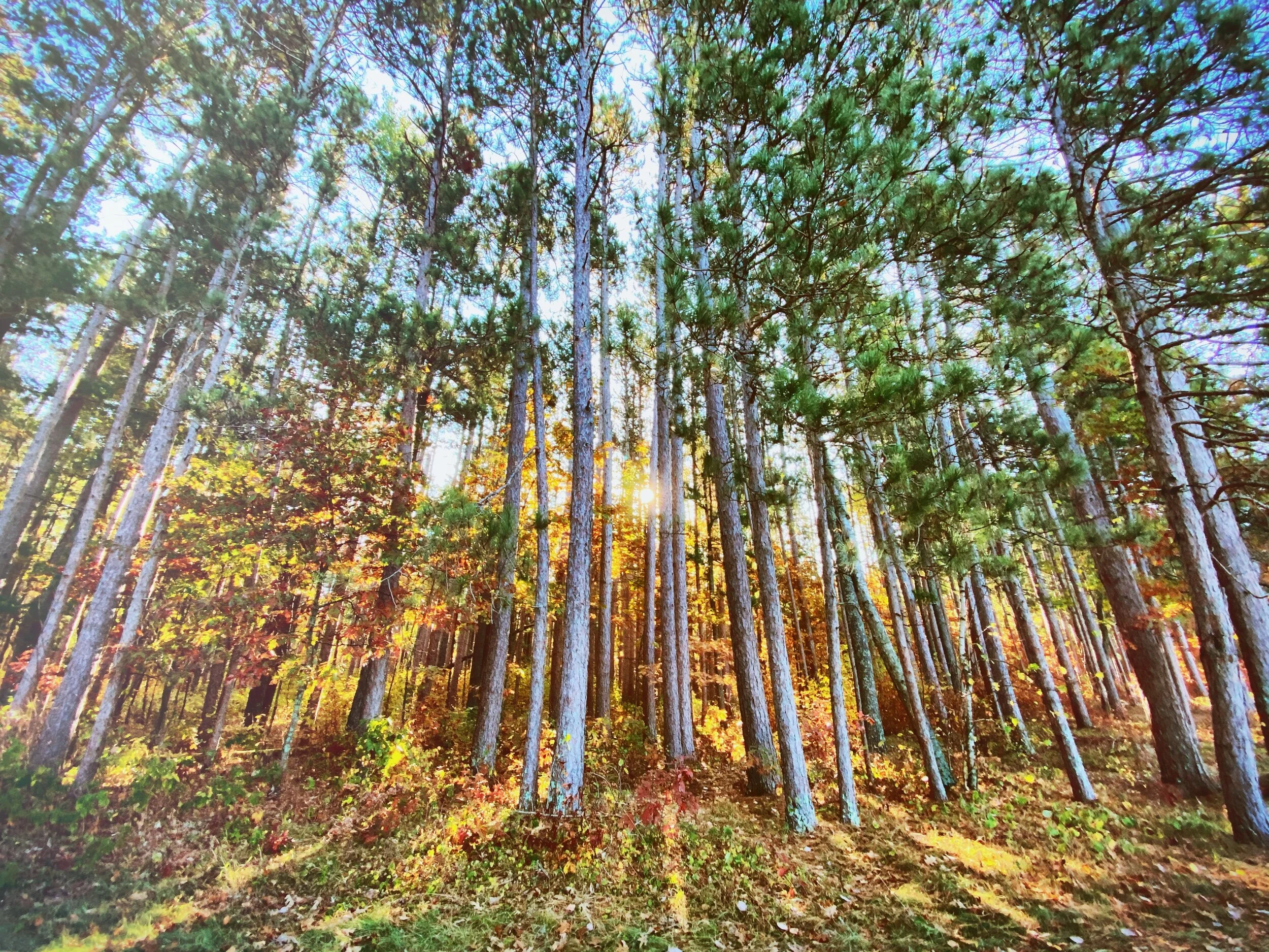 Sunshine through the pines on one of the short walks